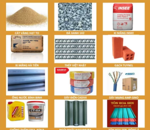 Vật liệu xây nhà gồm có vật liệu xây dựng phần thô, vật liệu hoàn thiện, vật dụng nội thất.